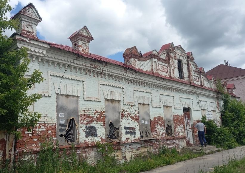 1. Градостроительные характеристики1.1. Местоположение в центре города Алатырь, в исторической части города на улице Комсомола.1.2. Композиционная значимость (роль) в структуре окружающего природного и культурного ландшафта, городского квартала; - Особая градостроительная роль объекта культурного наследия: здание органично вошло в сложившуюся застройку, играя важную градоформирующую роль, и активно участвуя в формировании исторического силуэта панорамы части города по улице Комсомола; - Визуальные связи памятника с другими строениями жилой застройки;- Габариты, максимальная высота от пола первого этажа до венчающего карниза – 3,1м; конфигурация и силуэт здания.2. Архитектурные и конструктивные характеристики2.1. Объемно-пространственная композиция, сформированная из одноэтажного «Г»-образного в плане объёма.2.2. Материал и характер отделки фасадных поверхностей здания – кирпич, покраска;Материалы и конструкции здания - несущие стены, их материал, конструкция (фундамент – кирпичный, ленточный. наружные стены – кирпичные, оштукатурены);Конструкция крыши (вальмовая); ее материал (железо), высотные отметки.2.3. Заполнение дверных и оконных проемов: формы, размеры, оконные проемы;Архитектурно-художественное оформление интерьеров: сохранившихся элементов архитектурного декора, их материал, техника исполнения, габариты, конфигурация;Композиционное решение и архитектурно-художественное оформление фасадов с эклектичными формами и декором;Пространственно-планировочная структура интерьеров, состоящая из двух изолированных объемов;Стилистические особенности и историческая функция здания - представляет собой характерный образец здания, возведенного в формах эклектики и имеющего оригинальные элементы архитектурного декора.3. Фрагменты фасадов и интерьера3.1. Венчающий профилированный карниз с фигурными кронштейнами.3.2. Надоконная тяга.3.3. Подоконный пояс.3.4. Кирпичные лучковые сандрики с замковым камнем.3.5. Филёнки под окнами.3.6. Аттик, украшенный филёнками и пилястрами, со слуховым окном посередине.3.7. Декоративные столбики.
