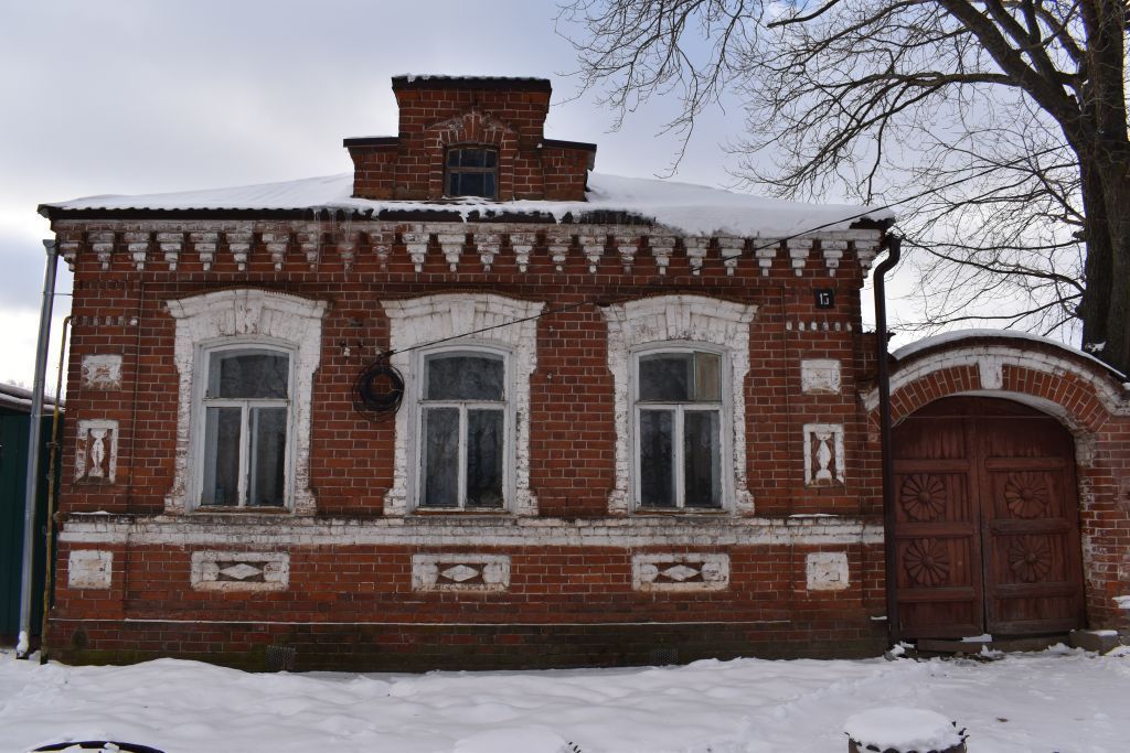 1. Градостроительные характеристики:- местоположение объекта культурного наследия в юго-восточной стороне исторического центра города Мариинский Посад, на южной стороне улицы с индивидуальной малоэтажной застройкой;- композиционная значимость (роль) в структуре окружающего природного и культурного ландшафта городского центра, как составная часть ансамбля частных строений улицы и её архитектурная доминанта, обращённая главным фасадом в сторону исторического ядра городского центра; - габариты: общие размеры – 7.3 м х 9.7 м в плане, максимальная высота от поверхности земли до венчающего карниза 4.6 м, до конька – 6.8 м; конфигурация и силуэт объекта культурного наследия;- секторы и направления видовых раскрытий с восточной и западной сторон улицы и визуальные связи объекта культурного наследия с другими объектами уличной застройки.2. Архитектурные и конструктивные характеристики:- объёмно-пространственная композиция, состоящая из квадратного в плане одноэтажного объёма с прямоугольным в плане входным пристроем со стороны двора; - композиционное решение и архитектурно-художественное оформление фасадов с использованием форм кирпичного декора на главном (уличном) фасаде: лучковые окна, обрамлённые кирпичными ленточными наличниками, подчеркнутыми фигурными бровками и замковыми камнями; подоконные филенки с ромбовидными элементами; лопатки на углах, украшенные филенками с заполнением из декоративных точеных деталей; разделение стены главного фасада по горизонтали подоконным фигурным карнизом и её завершение широким венчающим карнизом с городками; трехчастный аттик с лучковым слуховым окном, обрамленным ленточным наличником;- крыша основного объёма чердачная скатная с организованным наружным водостоком; высотные отметки по карнизам и конькам; фальцевая металлическая кровля;- виды отделки фасадной поверхности: красный облицовочный кирпич на известковом растворе фасадных поверхностей с использованием резного (фигурного) кирпича; - колористическое решение: красный кирпич с белыми швами и белая покраска выступающих и западающих элементов декора;- заполнение дверных и оконных проемов: формы, рисунок полотен и переплётов, в том числе окон с лучковым завершением и Т-образным рисунком переплётов, и прямоугольной формы деревянных полотен ворот в филёнчатом исполнении с арочным коричневым обрамлением;- пространственно-планировочная структура интерьеров: с разделением внутреннего пространства перегородками на квадратные и прямоугольные в плане помещения различного назначения, объединённые небольшим коридором;- конструктивные элементы: ленточные бутовые фундаменты; наружные стены из керамического полнотелого кирпича на известковом растворе.