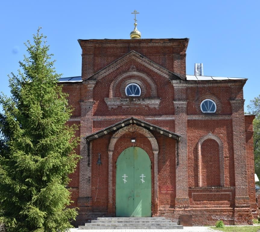 1. Объект культурного наследия расположен в центре поселения и является высотной доминантой, включая: силуэтные характеристики, ценные точки видового раскрытия, беспрепятственное визуальное восприятие объекта культурного наследия в сложившейся среде.2. Объемно-пространственная композиция храма формируется из высокого четверика с пониженными угловыми частями, к которому с восточной стороны примыкают три полукруглые алтарные апсиды, а с запада — узкий в объеме притвор и двухъярусная колокольня. Основное пространство в виде четверика представляет собой двухсветный прямоугольный объем, и завершается невысоким циркульным в плане барабаном с невысокой конической крышей; с востока к четверику примыкает пониженный объем из полукруглой трехчастной алтарной апсиды с выступающей центральной частью; объем двухъярусной колокольни состоит из последовательно уменьшающихся четвериков, так же завершается конической крышей с небольшой главкой на круглом в плане барабане.3. Конфигурация и конструкция крыши здания церкви, в том числе: крыша скатная с фальцевой кровлей из листового железа.4. Архитектурно-художественное оформление фасадов объекта культурного наследия: профилированный карниз; филенки; широкие подоконные карнизы; карнизные пояски; высокий профилированный цоколь.5. Пластика стен обогащена лопатками с импостами; центры стен четверика подчеркнуты щипцами, крупными полуциркульными окнами с профилированными подоконными карнизами с рядом сухариков; арочные оконные проемы украшены профилированными арочными наличниками и сандриками в виде кокошников; дверные проемы так же обрамлены сандриками в виде кокошников; широкие подоконные карнизы; филенки.6. Небольшие циркульные оконные проемы в уровне второго света первого яруса западного фасада колокольни подчеркнуты широкими профильными наличниками в виде кокошников; аналогичные ложные окна идут вдоль северного и южного фасадов колокольни.7. Местоположение, форма, размер и оформление дверных проемов, в том числе: главный вход расположен в западной стене нижнего яруса колокольни и увенчан двускатным металлическим навесом; на северном и южном фасадах основного объема четверика расположены еще два входа и имеют оригинальные металлические навесы.8. Столярные заполнения оконных проемов —характер расстекловки, металлические оконные решетки; столярные заполнения дверных проемов — деревянные филенчатые двери и кованные ставни.9. Пространственно-планировочная структура здания церкви: четырехстолпный трехнефный храм с расширенным центральным нефом, алтарной апсидой, притвором и колокольней; барабан центральной главы опирается на паруса и подпружные арки, расположенные между четырьмя центральными крещатыми в плане столбами; пространство угловых и боковых частей четверика перекрыто системой крестовых и коробовых сводов; помещение притвора перекрыто коробовым сводом с двумя распалубками.10. Архитектурно-художественное оформление интерьеров: кольцо барабана главы здания церкви со штукатурным профилированным карнизом; лепной декор стен и потолков.11. В помещении южного бокового нефа установлена кирпичная печь.12.Фрески, отдельные фрагменты фресок и фресковая роспись стен и потолков в интерьере храма.