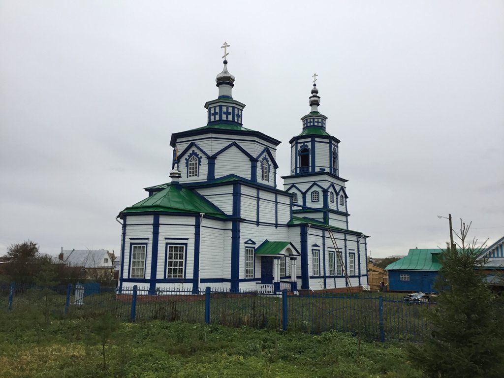 1. Местоположение объекта культурного наследия в северной части села Новое Тинчурино. Южным фасадом формирует фронт улицы Кооперативная. Объект культурного наследия выступает как высотная доминанта сельского поселения, включая: силуэтные характеристики, ценные точки видового раскрытия.2. Объёмно-пространственная композиция двухпрестольного деревянного храма с трёхчастной планировочной структурой на кирпичном основании; является единовременной постройкой; основной объём объекта культурного наследия – храм, построенный по типу «восьмерик на четверике», с крыльцами с северной и южной сторон, с востока к нему примыкает пятигранная алтарная апсида, с западной стороны – прямоугольная в плане трапезная, трёхъярусная колокольня с крыльцом.3. Историческая конфигурация, геометрия, габариты и конструктивное решение крыши, в том числе: восьмискатная кровля восьмерика храма, увенчанная восьмигранным барабаном с покрытием в виде невысокого шатра с луковичной главкой на восьмигранном тонком барабане; пятискатное покрытие апсиды с луковичным завершением на восьмигранном изящном барабане; двухскатная кровля трапезной с небольшой луковичной главкой на тонком барабане в юго-восточной части крыши; завершение колокольни: восьмигранный в плане третий ярус, покрытый восьмискатной кровлей, увенчанной восьмигранным барабаном с покрытием в виде невысокого шатра со сложной луковичной главкой на тонком барабане в завершении; двухскатное покрытие кровли западного, северного и южного крылец, фронтон с арочной нишей опирающийся на четыре деревянных столба попарно с каждой стороны; материал отделки кровли – фальцованный окрашенный металл, деревянные стропильная система и обрешетка.4. Архитектурно-художественное оформление фасадов, выполненное в стиле эклектика; обшивка фасадов тесанной доской в горизонтальном и вертикальном направлениях: А) основная плоскость фасадов – горизонтально расположенная обшивка; Б) в части тонких барабанов, поддерживающих главки, - вертикальная; В) в цокольной части колокольни на северном и южном фасадах – вертикальная.5. Профилированные венчающие карнизные пояса, тонкие пояса карнизы.6. Плоские пояса на стыках кровли и стен объёмов.7. Профилированные подоконные карнизы.8. Угловые пилястры.9. Плоскорельефные угловые пилястры в уровне барабанов.10. Лопатки в верхней части первого яруса четверика храма на северном и южном фасадах, не доходящие до цоколя здания.11. Невысокие угловые пилястры в уровне восьмерика храма и четверика колокольни с соединяющими их профилированными поясами, уложенными диагонально, образующие ряд остроконечных фронтонов.12. Детали в виде накладных греческих крестов в уровне восьмигранных барабанов храма и колокольни.13. Подоконные филенки в уровне третьего яруса колокольни.14. Фронтоны крылец, украшенные профилированными венчающими карнизами, нишей арочной формы, декорированной двумя видами подзоров.15. Сдвоенные резные колонны, поддерживающие фронтон крыльца, имеющие единую капитель и базу16. Ограждения крылец из досок, украшенных прорезной резьбой с профилированным поручнем.17. Прямоугольные оконные проёмы в уровне первого яруса колокольни, апсиды и два центральных окна трапезной на северном и южном фасадах в профилированных оконных наличниках с прямоугольным сандриком с п
