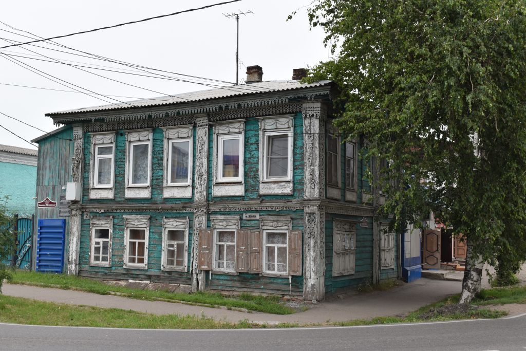 1. Общий объем: - объемно-планировочное решение в габаритах капитальных конструкций - сруб, шести стенок с прирубом; - первоначальные высотные отметки; - крыша - вальмовая. 2. Материал исполнения: - стены - бревенчатые. 3. Композиция: - фронтальная композиция фасадов (габаритные размеры, пропорции, количество оконных проемов); - фасад по ул. Ленина на три-две оконных оси, фасад по ул. Рабочей на три-две оконных оси, первый этаж со стороны ул. Рабочей выделен двумя крупными оконными проемами (двухчастными). 4. Стилеобразующие элементы архитектурного оформления фасадов: - декоративное оформление оконных проемов:1го этажа - наличники с прямоугольным сандриком, накладной декор стилизованного орнамента в поле лобовой доски, декоративные кронштейны фланкирующие завершение, ставни с вертикальными ширинками. Двухчастные окна Т-го этажа (восточный фасад со с стороны ул. Рабочей) - наличники с прямоугольным сандриком, накладной декор стилизованного орнамента в поле лобовой доски имеет трехчастную композицию, декоративные кронштейны фланкируют основную «тему» и завершение, ставни «гармошкой» с вертикальными ширинками; 2-го этажа - крупные наличники с прямоугольным сандриком, накладной декор в поле лобовой доски в виде стилизованных занавесей с кистями, декоративные кронштейны фланкирующие завершение, широкая подоконная доска «в рамку» без декора; - первоначальная расстекловка оконных проемов; - горизонтальная обшивка профилированной доской основного объема, и вертикальная обшивка прируба; - профилированный карниз с подзором и фриз, оформленные пропильной резьбой; - профилированный межэтажный пояс с рядом подзоров; - декоративное оформление пропильной резьбой растительного орнамента лопаток; - цветовое решение: основной объем - темным цветом, деталировка фасада - более светлым цветом.