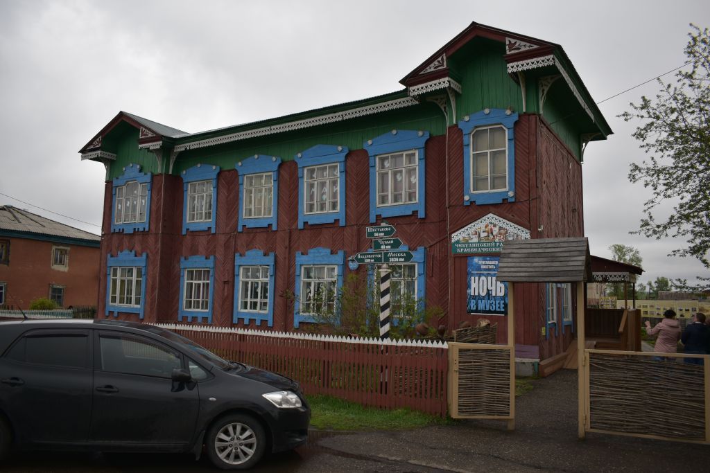 Местоположение и градостроительные характеристики здания в застройке: Находится в центральной части поселка, в 50 м от перекрестка улицы Юбилейной. Формирует панораму застройки улицы Советская. Объемно-пространственная композиция здания: Прямоугольный в плане двухэтажный дом (размер 10м х 13м). Соотношение основного объема здания и выступающих объёмов ризалитов. Коридорная схема внутренней планировки. Главный вход со стороны южного фасада. Два дополнительных входа со стороны дворового фасада. Дополнительный вход со стороны южного фасада. Конструкции и материал наружных капитальных стен. Габариты по существующему плану и высотные отметки объемов здания. Отметки, форма карнизов и кровли здания. Композиция и архитектурно-художественное оформление фасадов здания: Асимметричная композиция главного фасада на шесть осей оконных проемов. Два ризалита главного фасада. Два ризалита дворового фасада. Местоположение, форма дверных и оконных проемов. Исторический рисунок и расстекловка оконных заполнений. Оконные проемы прямоугольной формы. Декоративное оформление оконных проемов дворового фасада: наличники геометрического очертания без резного декора. Сандрики наличников второго этажа окрашены точечными розетками. Деревянное крыльцо главного вход с пандусом. Односкатная кровля крыльца с ажурной пропильной резьбой карнизной части. Фриз декорирован профилированной вертикальной доской с одним рядом подзора. Карниз на четыре ряда профилированных досок. Ажурная пропильная резьба карниза главного фасада. Резные кронштейны, поддерживающие карниз. Фронтоны ризалитов главного фасда. Причелины фронтонов декорированы ажурной накладной пропильной резьбой. Сложная форма кровли. Цоколь из бутового камня, обшит водоотводящей доской. Материал исполнения: Здание рублено «в лапу». Выпуски бревен зашиты узкими досками. Стены главного и части южного фасадов обшиты профилированной доской – рисунок «елочка». Остальные стены фасадов бревенчатые без обшивки. Архитектурно-художественное оформление интерьеров: Деревянная лестница, ведущая на второй этаж, по деревянным тетивам. Благоустройство территории: палисадник перед главным фасадом. Историческое функциональное использование памятника.