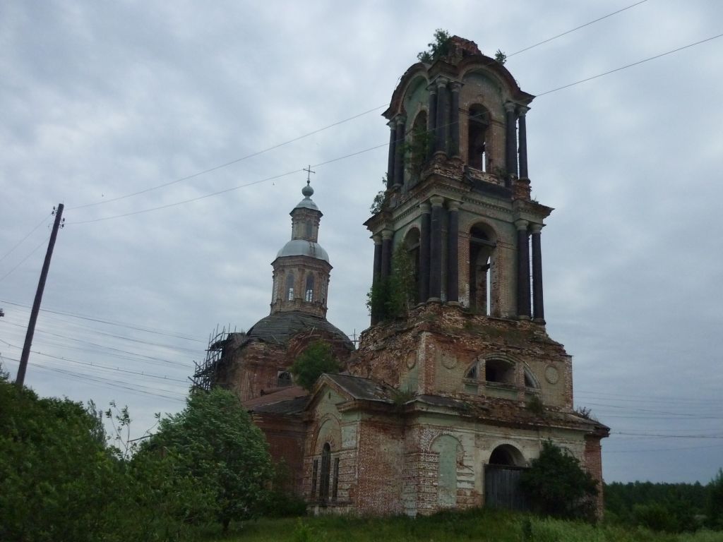 • Все капитальные стены здания, своды, столбы, арки, лицевая кладка и глиняного кирпича;• Кладочные архитектурные элементы декора фасадов: Храм Декоративное оформление фасадов холодного храма выполнено в стилистике Вятских храмов XVIII века - переходном периоде от барокко к классицизму. Элементы фасадного декора выполнены из лекального, тесанного кирпича. Стены храмового двусвечного четверика имеют трехчастное деление. Оно создается спаренными па углах и одинарными по сторонам окон пилястрами. Боковые членения шире среднего. По ярусно храм разделяет высокий, профилированный, сильно выстулающий карниз, раскрепованный в местах примыкания пилястр и защищенный кровелькой. На каждом ярусе пилястры опираются па постаменты, акцептированные прямоугольными филенками-рамками. Завершающий тело храма широкий профилированный карниз повторяет дугообразные выступы по верху стен четверика - «полуглавия». Оконные проемы первого яруса храма украшены профилированными наличниками, полуколонками и балюстрадками пал проемами. Оконные проемы второго яруса храма декорированы профилированными наличниками е многоугольными килевидными завершениями и кисточкой, висячими полуколонками по сторонам и балюстрадками в подоконном пространстве. «Полуглавия» четверика имеют по одному небольшому оконному проему-картушу с профилированным наличником. С восточного фасада лот проем - ложный. В центре южного фасада нижнего яруса храма устроен дверной проем с циркульным завершением, богато декорированный профилированным порталом с растительным орнаментом. Над проемом имеется прямоугольная ниша. Храм покрыт сложным многоугольным куполом с двумя световыми восьмериками - большим и малым. Большой восьмерик имеет восемь окопных проемов с циркульным завершением. Оконные проемы декорированы рамными наличниками с замковым камнем и подоконной профилированной полочкой с гирьками. Углы восьмерика акцентированы пилястрами на постаментах. Завершает восьмерик широкий профилированный карниз, раскрепованный в местах примыкания пилястр. Малый восьмерик имеет четыре оконных проема и неравные грани. Декорирован аналогично большому восьмерику. Венчает храм главка с крестом. Алтарь Углы пятигранного алтаря акцентированы пилястрами на постаментах с прямоугольными филенками-рамками. Степы завершает широкий профилированный карниз, плавно переходящий с чела храма и раскрепованный в местах примыкания пилястр. Оконные проемы алтарной части декорированы профилированными наличниками, витыми висячими полуколонками, сандриками-бровками и подоконными нишами, повторяющими форму бровок. Трапезная Трапезная имеет сложную в плане форму со срезанными углами, вогнутыми внутрь объема. С восточного фасада объем трапезной как бы обнимает холодный храм двумя малыми приделами. Северный и южный фасады трапезной поделены плоскими пилястрами на семь частей. Оконные проемы трапезной с циркульным завершением и рамным наличником. Крайние - уменьшенные, акцентированные спаренными пилястрами и сандриками-полочками. Подоконное пространство декорировано прямоугольными нишами. Завершает фасады трапезной широкий профилированный карниз, раскрепованный в местах примыкания пилястр. Колокольня е одноэтажными палатками. Колокольня четырех ярусная. Нижний ярус - четвери