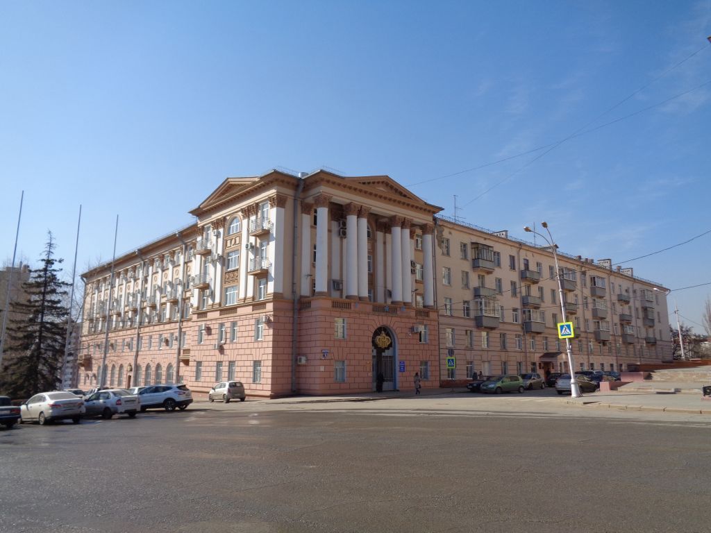 Здание построено на площади Советской по проекту Н. Бровкина в стиле «советского неоклассицизма», как гостиница. На сегодняшний день сохранились объёмно-пространственная структура, композиционное решение и архитектурное оформление фасадов здания. ] .Градостроительные характеристики - местоположение по северозападной красной линии Соборной площади; визуальная связь с элементами ансамбля площади (входит в состав объекта культурного наследия регионального значения «Ансамбль пл. Ленина (бывшая Соборная пл.)» XVIII -ХХ вв.), является элементом планировочной структуры площади; видовые раскрытия с разных ракурсов Соборной площади, Петровского спуска,ул.Сапёрной. 2. Объемно-пространственная и планировочная композиция: здание прямоугольное в плане, вытянутое в направлении юго-запад - северо-восток; пять надземных этажей с подвалом; пространственно-планировочная структура в системе капитальных стен с двухсторонней коридорной планировочной системой, колонны круглого и квадратного сечения в помещениях первого этажа; объёмы и местоположение лестниц и лифтов; сложная скатная форма крыши с организованным водоотводом; высотные отметки карнизов, фронтонов, коньков здания. 3.Композиционное решение фасадов:главного юго-восточного фасада с асимметричной композицией, выполненного в девятнадцать световых осей по первому этажу, усложнённого ризалитом в восточной части в четыре световые оси на первых двух этажах и в три оси на трёх верхних этажах, с расположением входа в здание в восьмой световой оси; северо-восточного с симметричной композицией в четыре световые оси, с портиком и треугольным фронтоном в три световые оси, с главным входом в здание по центру фасада; юго-западного с симметричной композицией в три световые оси; 4.Архитектурное оформление фасадов:в стилевых формах советского неоклассицизма; сохранению подлежат высотные отметки, габариты, материал и местоположение декоративных элементов здания. На всех фасадах: способ отделки цоколя и стен методом штукатурки с последующей окраской фасадными красками в цветовой гамме неоклассицизма; профилированный пояс в виде вала и полочки на стыке цоколя и стен; широкий междуэтажный пояс, выделенный двумя горизонтальными профильными поясками, проходящий над вторым этажом, оконные проёмы прямоугольной формы пропорции 1 : 1,5. Главный юго-восточный фасад: обработка квадровым штукатурным рустом двух нижних этажей; обработка рустом с замковыми камнями оконных проёмов первого этажа; плоские пилястры с капителями коринфского ордера -парные в центре и огибающие углы на высоту верхних трёх этажей на объёме ризалита; полуциркульный оконный проём пятого этажа центральной световой оси ризалита, обработанный тянутым штукатурным наличником и тянутым профилированным подоконным пояском; лепное панно под окном пятого этажа центральной световой оси ризалита в виде круглой филёнки, фланкированной квадратными филёнками с вогнутыми гранями, обращёнными к центру композиции, по сторонам расположены вертикальные гирлянды в виде дубовых ветвей; широкий прямоугольный оконный проём на третьем и четвёртом этажах центральной оси ризалита, обрамлённый тянутым штукатурным наличником; лепное панно под окном четвёртого этажа центральной световой оси ризалита в виде трёх круглых розеток, разделённых 