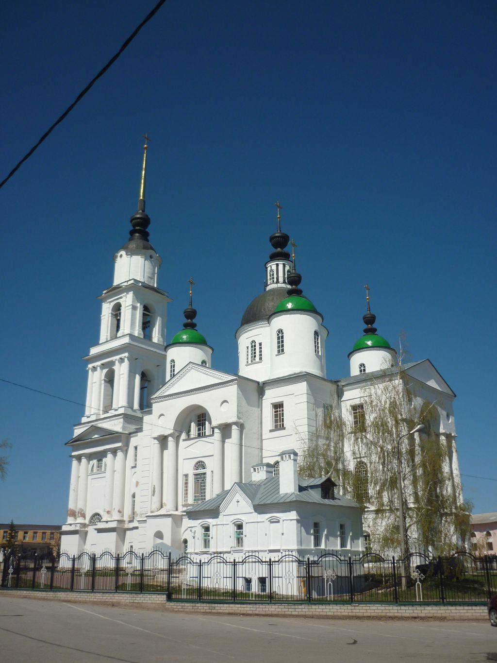 Исторически ценное функциональное назначение:церковное использование. Градостроительные характеристики, местоположение: находится на стрелке рек Становой и Ягодной Рясы, открывается с дальних расстояний (особенно с юга), является архитектурной и высотной доминантой города. Объемно-пространственная композиция, состоящая из двухэтажного, квадратного в плане пятикупольного основного объема храма с ризалитами, четырехколонных портиков в центрах фасадов, что придает плану очертания равноконечного креста, с западной стороны – прямоугольный объем трапезной, соединенной переходом с четырехярусной колокольней, увенчанной шпилем. Завершение четверика основного объема круглым световым барабаном, перекрытым куполом с главкой и четырьмя малыми круглыми барабанами с главками по углам; сферический купол и шпиль колокольни;кровля основного объема храма –стальная оцинкованная кровля со стоячим фальцем, материал кровли основного купола и купола завершения колокольни – медная кровля с лежачим фальцем. Главки куполов и главка основания шпиля колокольни и шпиль колокольни- из выколоченных медных листов. Первый этаж:1.горизонтальная рустовка поверхности фасадов четверика храма и восточной части трапезной, гладкие поверхности фасадных плоскостей первого яруса портиков с нишами, западной части основания трапезной и основания первого яруса колокольни;2.спаренные колонны портиков опираются на выступающие постаменты первого яруса, в которых устроены полуциркульные арочные ниши; 3.по центру портиков расположены полуциркульные дверные проемы с полуциркульными же узкими оконными проемами по обе стороны, оформленные в неглубокую лучковую нишу, за исключением восточного фасада, где по центру портика расположен один прямоугольный оконный проем;4.прямоугольная форма окон, акцентированных лучковым контррельефным обрамлением с веерной рустикой;5.подоконные полки со сложным профилем;6.простой трехобломный карниз, отделяющий 1-ый ярус собора от второго. Второй этаж: 7.рустованные лопатки, обрамляющие углы четверика основного объема; 8.композиция четырёхколонных портиков в центре северного, южного, и восточного фасадов, образованная круглыми в сечении колоннами с энтазисом, стоящими попарно на выступах нижнего этажа и несущие высокий гладкий аттик, прорезанный снизу трехчастной люнеттой с широкими импостами во всю ширину центрального интерколумния;9.по сторонам люнеты на гладкой поверхности аттика круглые утопленные медальоны, предназначавшиеся для живописных композиций;10.портики увенчаны невысокими треугольными фронтонами с тонко обработанными профилями карнизов, украшенных мелкими сухариками;11.форма и расположение окон: «палладианские окна», оформлены в прямоугольную нишу, расположены в нижнем свете второго этажа в портиках и по обеим сторонам портика в северном и южном фасаде. Окна трехчастные с повышенным полуциркульным средним проемом и двумя узкими прямоугольными по бокам, на четверике разделены полуколоннами, опирающимися на межэтажный карниз. В портиках окна разделены гладкими импостами, которые находят продолжение в выступающих лопатках. Подоконные тяги тонкой профилировки крепуются на полуколоннах и лопатках; 12.лучковые окна в нижнем свете трапезной и апсиде; полуциркульные окна-люнеты во втором свете в п