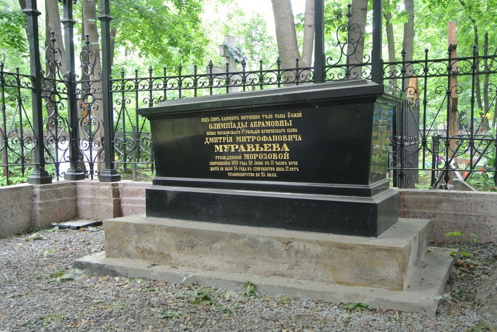 Приказ Министерства культуры Российской Федерации "О регистрации объекта культурного наследия регионального значения «Муравьевой Олимпиады Абрамовны (урожд. Морозовой), (1836–1870 гг.), жены Д.М.Муравьева, надгробие, 1870 г.», 1836–1870 гг., входящего в состав объекта культурного наследия регионального значения «Семейное захоронение Морозовых, 2–я пол. XIX в. – нач. XX в., архитектор Ф.О.Шехтель (?), скульптор Н.А.Андреев», 2–я пол. XIX в. – нач. XX в. (г. Москва), в едином государственном реестре объектов культурного наследия (памятников истории и культуры) народов Российской Федерации" (№ 123153-р от 2017-11-15)