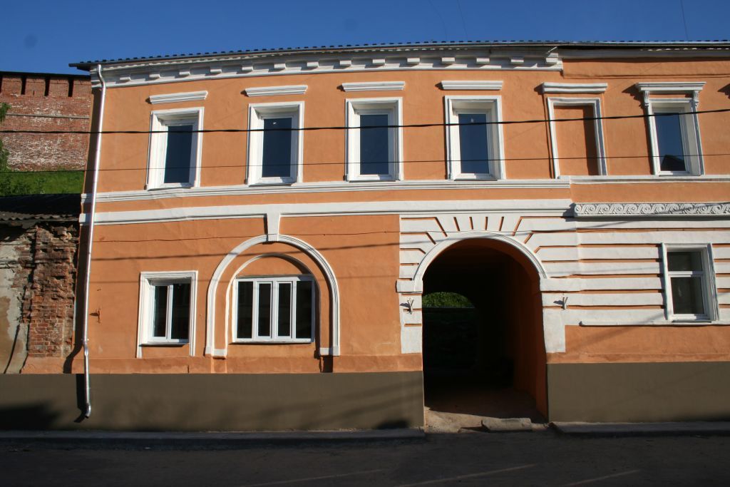 Предмет охраныобъекта культурного наследия регионального значения«Жилой дом», 1-я пол.XIX в. (г. Нижний Новгород, ул. Кожевенная, 10 (литер А) со схемами предмета охраны Градостроительные характеристикиМестоположение и градоформирующее значение здания, расположенного на исторической территории Нижнего посада в ряду брандмауэрной застройки улицы Кожевенной (бывшей Верхней Живоносновской улицы) по линии застройки Объемно-пространственные и планировочные характеристики Объемно-пространственная композиция двухэтажного здания постройки 1-й половины XIX века, прямоугольного в плане, перекрытого двухскатной крышей, с проездной аркой и подвалом под всем объемом здания, включая проездную арку. Уклон крыши, ее конфигурация и габариты. Высотные отметки (за отметку 0.000 принята существующая отметка пола 1-го этажа):- конька крыши, - венчающего карниза здания.Конструктивные характеристики Конструкции, материал и техника кладки подлинных капитальных продольных и поперечных кирпичных стен из красного керамического кирпича.Конструкции, материал и техника кладки цилиндрического свода подвала с распалубками из красного керамического кирпича, цилиндрических сводов малого пролета из керамического кирпича по металлическим балкам проездной арки. Крыша двускатная, характер кровельного покрытия – металлическоефальцевое.Композиционное и архитектурно-художественное оформление фасадовКомпозиция главного (северного) фасада в 2 проема по первому этажу и 4 оконных проема по второму этажу и проездной аркой в крайней правой оси.Композиция дворового (южного) фасада в 2 оконных проема по первому этажу, 5 оконных проемов по второму этажу с проездной аркой.Композиция бокового (восточного) фасада – глухая брандмауэрная стена с треугольным фронтоном.Местоположение, габариты и форма первоначальных проемов 1-й половины XIX века:- прямоугольный оконный проем дворового (южного) фасада в уровне первого этажа со стороны проездной арки;- прямоугольные оконные проемы главного (северного) и дворового (южного) фасадов в уровне второго этажа;- арочный проем проездной арки.Местоположение и форма первоначального оконного проема первого этажа главного (северного) фасада, расположенного в крайней левой оси. Местоположение и форма первоначального оконного проема первого этажа дворового (южного) фасада, расположенного с правой стороны.Местоположение и форма первоначального арочного проема в уровне первого этажа (габариты существующего оконного проема в арочной нише не относятся к предмету охраны).Местоположение проемов подвала (закладка проемов не относится к предмету охраны).Местоположение, форма, горизонтальный габарит и верхняя высотная отметка прямоугольного проема второго этажа дворового (южного) фасада, расположенного по оси света 4 (четвертого слева).Заполнения оконных проемов (первоначальные столярные заполнения утрачены): исторический материал заполнений - дерево.Вид обработки поверхности и декора фасадов: оштукатуренная и окрашенная поверхность кирпичной кладки; штукатурный и лепной декор.Архитектурное решение главного (северного) фасадаГоризонтальные членения фасада, геометрия, габариты и высотные отметки:- междуэтажный пояс простого профиля;- профилированный подоконный пояс второго этажа;- профилированный венчающий карниз с дентикулам