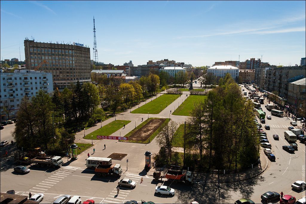 Градостроительные характеристикиМестоположение сквера и его роль в планировочной структуре площади Максима Горького: общественное парадное пространство в центре прямоугольной площади, центром композиции которого является памятник А.М.Горькому (объект культурного наследия федерального значения), ориентированный на ось улицы Большой Покровской.Габариты и конфигурация сквера в его исторических границах, сформированных в начале 1950-х гг. по проекту московских архитекторов В.В.Лебедева и П.П.Штеллера с участием архитекторов проектных институтов города Горького. Композиционно-планировочная структура Трехчастная композиция сквера: верхняя часть с памятником А.М.Горькому (объектом культурного наследия федерального значения); средняя часть с двумя газонами с цветочными рабатками вдоль центральной оси; нижняя часть с тремя газонами для цветочных композиций.Осевая планировочная структура сквера, центральная продольная ось которого ориентирована на памятник А.М. Горькому, являющаяся воплощением классицистических принципов формирования парадных общественных пространств, характерных для советского градостроительства послевоенного периода.Местоположение памятника А.М.Горькому (объекта культурного наследия федерального значения), замыкающего центральную планировочную ось сквера. Свободное пространство сквера, обрамленное периметральной посадкой древесно-кустарниковых насаждений, создающее ощущение интерьерности внутреннего пространства сквера.Соотношение площадей, занятых открытыми площадками и прогулочными дорожками, газонами, древесно-кустарниковыми насаждениями.Местоположение, габариты и конфигурация шести газонов.Выраженный уклон в направлении юг-север, существующие планировочные отметки рельефа. Шесть входов в сквер, два (южный и северный) расположены по центральной продольной оси сквера, четыре (юго-восточный, юго-западный, северо-восточный, северо-западный) расположены на двух поперечных осях.Местонахождение лестничных групп со стороны входа в сквер в его верхней части, а также соединяющих верхнюю и среднюю части сквера; характер облицовки ступеней - натуральный камень.Характер ограждения периметра сквера в виде чередования металлических ажурных звеньев с кирпичными столбами (существующая ограда не является предметом охраны).Визуальные взаимосвязи внутри территории сквера и от его входов от характерных видовых точек.Насаждения и приемы озеленения Квадратный в плане партерный газон вокруг памятника А.М.Горькому (объекта культурного наследия федерального значения), имеющий рельеф, повышающийся к постаменту памятника, и обрамленный бордюром из натурального камня.Посадки древесно-кустарниковых насаждений, носящие в силу их видового разнообразия уникальный для урбанизированных территорий характер дендрологического озеленения.Видовой состав лиственных, хвойных и кустарниковых пород (уточняется в рамках комплексного процесса реставрации), включающий ценные древесные породы (дуб черешчатый, бархат амурский, орех манчжурский, лиственница сибирская, каштан конский).Приемы озеленения (уточняются в рамках комплексного процесса реставрации): - плотные линейные посадки деревьев по периметру сквера, сочетающиеся с линейными посадками кустарников в виде стриженой живой изгороди;- ширина газ