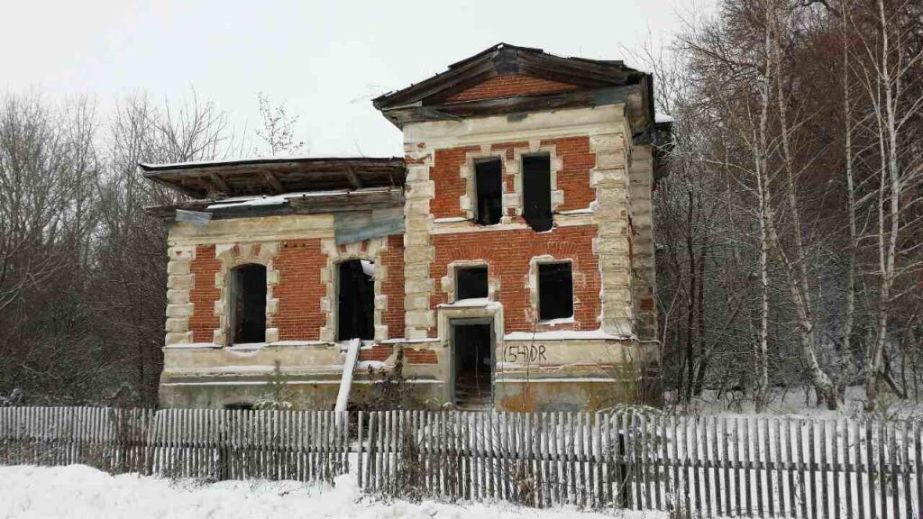 Жилой дом (усадебный дом):градостроительная характеристика здания, расположенного в южной части усадебного комплекса; главным (южным) фасадом обращенного в сторону основного въезда в усадьбу; северным – в сторону регулярного парка; вдоль восточного торца проходит проездная дорога;объемно-пространственная композиция протяжённого объ¬ёма, возведенного в формах французской архитектуры XVII в., ориентированного по оси «запад-восток», состоящего из центральной двухэтажной части, двух боковых одноэтажных крыльев и двухэтажного флигеля, расположенного с восточной стороны, соединенного с основной частью одноэтажным переходом; местоположение, габариты, конфигурация и оформление дверных и оконных проемов здания: прямоугольные оконные проемы, оформленные профилированными рамочными наличниками с рустом и «замками»; арочные оконные и дверные проёмы, оформленные камнями трапециевидной формы с фаской (чередующиеся – большего и меньшего размера); небольшие прямоугольные оконца, расположенные в цокольной части;композиция и архитектурно-художественное оформление фасадов, которыми являются: профилированный кар¬низ, завершающий стены; профилированные подоконные тяги; материал капитальных стен и фундамента: красный глиняный кирпич; перекрытия: плоские; материал кровли: железо; характер обработки фасадной поверхности здания: открытая кирпичная кладка; оштукатуренный кирпичный цоколь и венчающий карниз; углы обработаны сильно выступающим ленточным рустом.