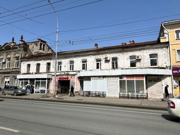 1. Местоположение Объекта в структуре города: по красной линии застройки ул. Московская2. Габариты, объемно-планировочная композиция и конструктивное решение здания: •этажность (двухэтажное);•форма в плане (сложная)•крыша здания, её конструкция, конфигурация, материал, характер кровельного покрытия; •местоположение наружных и внутренних несущих стен;•габариты и местоположение лестниц.2.1. Главный (южный) фасад по ул. Московская на 10 световых осей.3.Материал стен – кирпичная кладка, штукатурка4.Композиционное и архитектурно-художественное оформление фасадов сложившийся на период середины XX в.:•стилевое решение (эклектика);•асимметричная композиция фасада;•габариты, профиль и вынос венчающего карниз;•фриз с плоскими орнаментом;•филенчатые пилястры;•акант на месте капители пилястр;•межэтажный карниз; •подоконный карниз с пьедесталами пилястр;•замковый камень над проездной аркой; 5.Габариты, местоположение и декор световых осей:•лучковые окна в уровне 2-го этажа;•обрамление окон:- замковый камень пятиугольной формы - серьги;•форма, габариты и местоположение поездной арки.