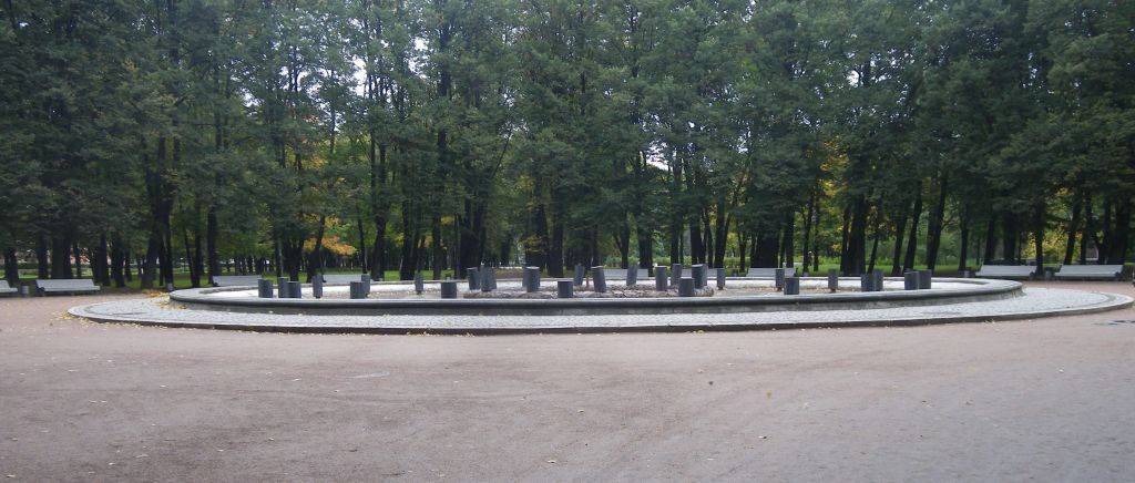Фонтан «Слава» Объемно-пространственное решение: круглая чаша фонтана с водометами; габариты и конфигурация чаши фонтана. Архитектурно-художественное решение: гранитная чаша со скругленным краем; венок на круглых орнаментированных опорах; тридцать семь водометов в виде бронзовых литых «тюльпанов»; материал чаши – гранит, водометов – бронза;