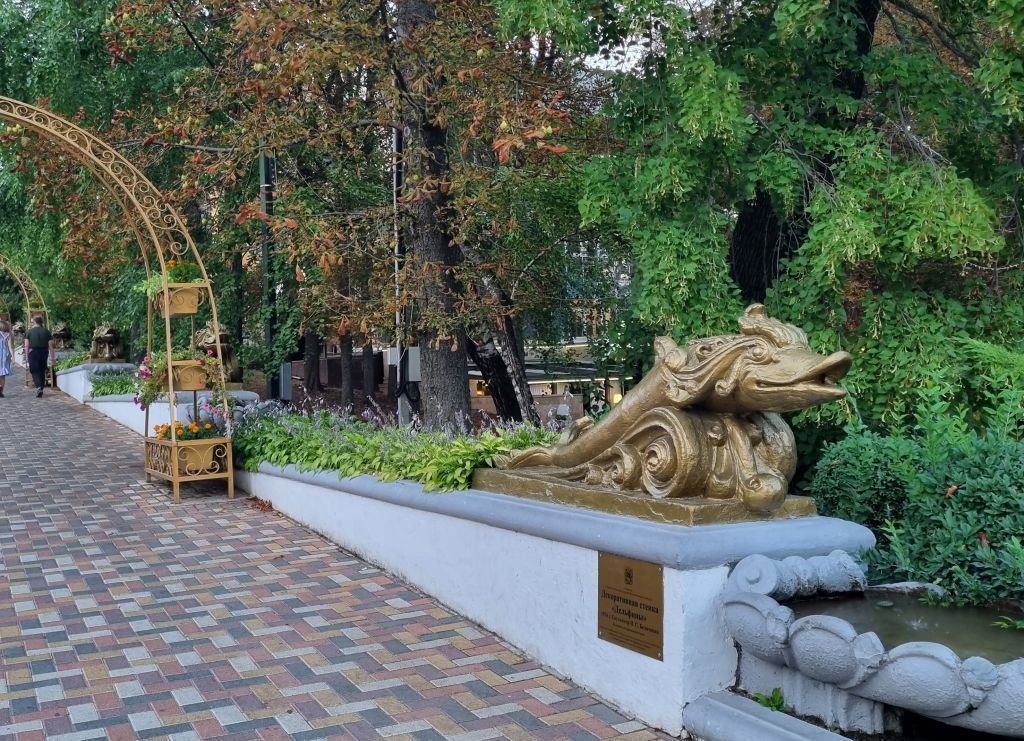 Предметом охраны объекта культурного наследия «Дельфины», 1954 год, расположенного по адресу: Ставропольский край, г. Ставрополь, бульвар на пр-ке К.Маркса, (фактический адрес: Ставропольский край, г. Ставрополь, пр-кт Октябрьской Революции) (далее – ансамбль), являются:1.Местоположение ансамбля на проспекте Октябрьской Революции, видовые раскрытия со стороны проспекта Октябрьской Революции, а также с проспекта Карла Маркса.2.Композиционная значимость, ансамбля, являющегося акцентом проспекта Октябрьской Революции г. Ставрополя, габариты, силуют ансамбля3.Архитектурно-пространственная композиция ансамбля: декоративная стенка, имеет понижение с севера к югу; стенка в виде парапета имеет ступенчатую форму; на каждой ступени (кол-во ступеней – 7 шт.) парапета размещен небольшой фонтан в виде фигуры дельфина (кол-во дельфинов – 7 шт.) на волне, волна представляет собой стилизованную волюту; основная часть стены занята цветочными клумбами(количество – 8 шт.); с южной стороны к ступеням примыкают чаши рокайной формы (количество – 7 шт.), в которые из клюва дельфина льется вода, создавая каскад фонтанов; декоративная стена начинается и заканчивается с обоих концов ступенчатыми постаментами (2 шт.), на которых установлены декоративные вазы (2 шт.)4.Местоположение, габариты декоративной стенки ансамбля (длина – 76,2 м, высота уступов – от 0,15 до 0,8 м), характер отделки (фактурная штукатурка нейтрального цвета)5.Местоположение, габариты (Н-0,75 м, длина – 2,35 м), материал исполнения и характер отделки (бетон, окраска бронзового цвета) скульптур дельфинов на волне6.Местоположение, габариты, материал изготовления и характер отделки (фактурно обработанный бетон) чаш7.Местоположение, габариты (ширина – 0,9м, Н-0,9 м), количество (2 шт.), характер обработки (фактурная штукатурка нейтрального цвета) ступенчатого постамента и характер обработки (бетон и окраска) ваз