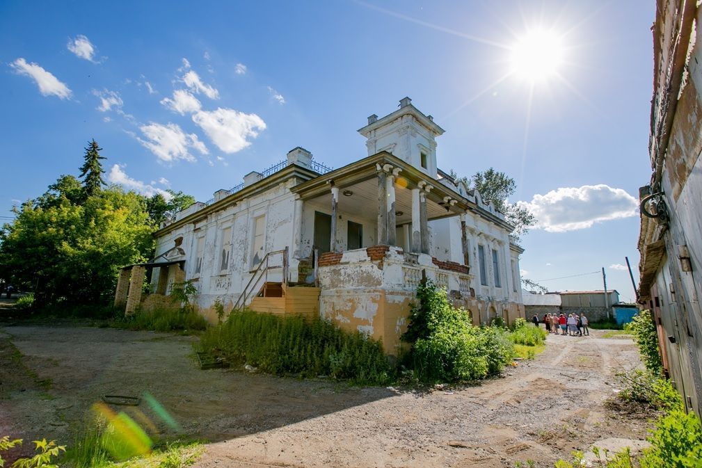 -местоположение здания: усадебный дом расположен на южной окраине поселка Красный Ключ на склоне невысокой надпойменной террасы реки Камы, на ее левом берегу, территория домовладения в сложившихся границах, обнесенная сохранившейся металлической ажурной оградой вдоль западной стороны и до проездных ворот на юго-западном участке территории усадьбы;-объемно-пространственная композиция: одноэтажное кирпичное здание на освещенном цокольном этаже, увеличивающимся по высоте к юго-востоку, на каменном фундаменте, прямоугольное в плане под невысокой шатровой крышей, с симметричным северным торцевым фасадом в два оконных проема, обрамляющих центральный выступающий тамбур главного входа под полукруглой крышей, прорезанной двумя мощными столбами и с двустворчатой дверью в арочном дверном проеме с полуциркульным оконным проемом над дверью, к которой ведет двухмаршевая каменная парадная лестница на глухом основании с ограждениями из кованного ажурного железа, с противоположным южным фасадом в три оконных проема и с асимметрично расположенным дополнительным входным узлом с фронтоном и овальным световым окном над дверью и с парапетной аттиковой стенкой в завершении, западный фасад в девять оконных проема с выступающим в северо-западной угловой части крайним ризалитом в два оконных проема с закругленными углами, завершающимся парапетной аттиковой стенкой с идентичными закруглениями в углах, и с раскрепованной центральной частью в три оконных проема с более широким центральным и узкими боковыми окнами в обработке простеночных шести пилястр, несущих лучковый фронтон, вписанный в свою очередь в завершающий прямоугольный аттик, парадный протяженный восточный фасад с ориентацией на реку с выступающим и возвышающимся центральным ризалитом в три оконных проема с прямоугольным фронтоном с тремя круглыми люкарнами в основании высокой криволинейной крыши зеркального свода с завершающим шпилем и с примыкающей с левой стороны высокой квадратной кирпичной башни со смотровой площадкой на крыше, и с выступающей вперед с левой стороны прямоугольной крытой террасы на высоком глухом основании с низкой трехскатной крышей на поддерживающих двенадцати деревянных колоннах с пристроенной лестницей с южной стороны террасы, сохранившаяся металлическая ажурная ограда обрамляет усадьбу с западной стороны и до проездных ворот на юго-западном участке территории усадьбы;-основные габариты здания (строения);-подлинные кирпичные стены;-материал исполнения: керамический кирпич, природный камень, дерево, стекло, металл;-конструктивные особенности, кирпичные перемычки проемов, кирпичные своды по металлическим балкам в перекрытии цокольного этажа, материал и конструктивное решение подлинных плоских чердачных перекрытий, местоположение, конфигурация и конструктивное решение внутренней каменной лестницы, местоположение, конфигурация и конструктивное решение двухмаршевой каменной лестницы крыльца парадного входа на глухом основании с ограждениями из кованного ажурного железа и крытой террасы на высоком глухом основании на двенадцати деревянных колоннах, спаренных с восточной стороны, конфигурация и конструкция лестницы в смотровой башне, ведущей на открытую площадку на крыше; особенности объемно-планировочного решения: функци