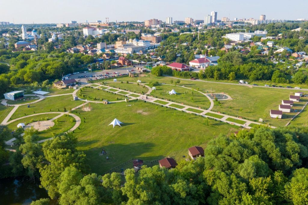 Принарский парк по праву гордится местоположением и живописными видами. Ведь он находится на реке Нара, с которого открывается незабываемый вид на Высоцкий монастырь. По направлению к нему проложена центральная аллея.